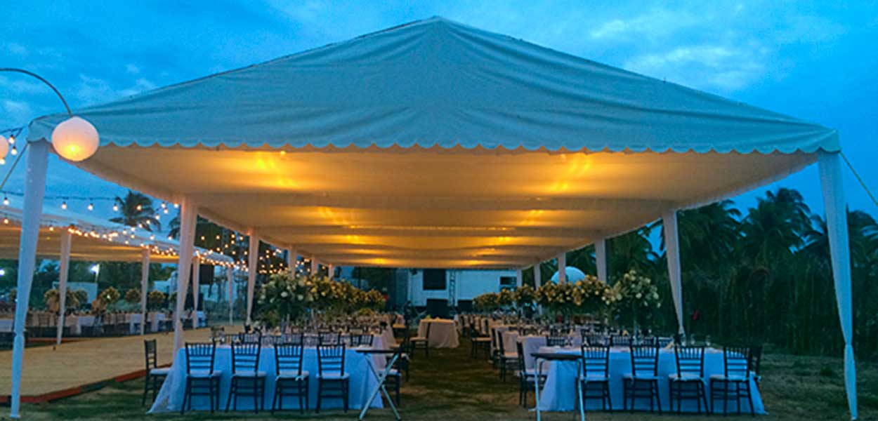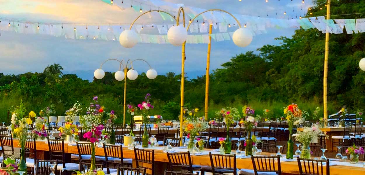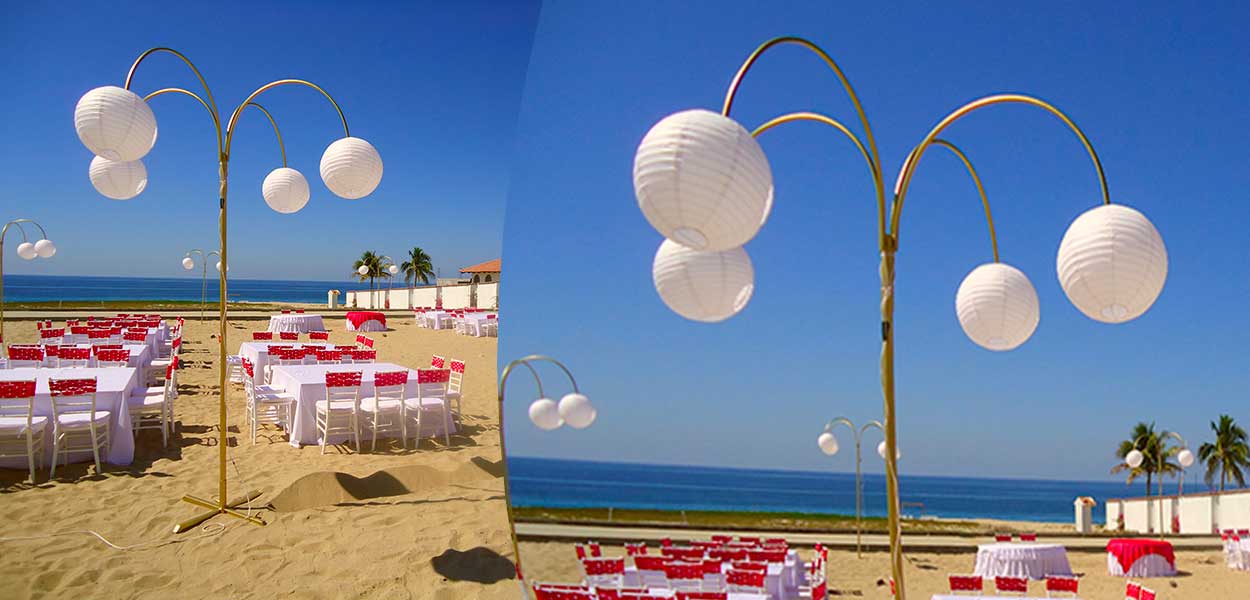 Tarimas, guirnaldas y módulos iluminados